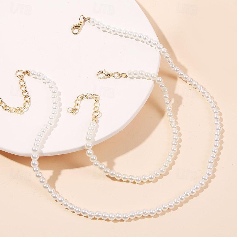 Highlights Jewelry Highlights [Fabric and Material] : This exquisite jewelry set is crafted from high-quality, lustrous white pearls. Each piece showcases the timeless elegance and sophistication of pearls, providing a smooth and uniform appearance for a classic look. [Shape and Fit] : The set includes a perfectly-sized necklace designed to gracefully rest along the collarbone, and a matching bracelet that complements the necklace seamlessly. Both pieces are crafted with precision to ensure comfort and style, making them suitable for all-day wear. [Design Highlights] : The jewelry set features a traditional round shape with a modern twist, making it both fashionable and elegant. Its punk and cute elements are subtly integrated into the overall design, enhancing its exceptional charm while maintaining a refined aesthetic. [Occasions] : Ideal for weddings, evening parties, and as a special gift, this pearl set elevates any outfit, adding a touch of class and sophistication. Whether for a formal event or a chic evening outing, these pieces suit a variety of occasions, making them versatile additions to any jewelry collection. [Size Range] : Specifically designed for women, this set offers a one-size-fits-most approach, catering to various preferences. With its adjustable components and classic design, it ensures a perfect fit for diverse individual styles. Perfect for everyday use. superior materials and excellent craftsmanship ensure long-lasting durability.