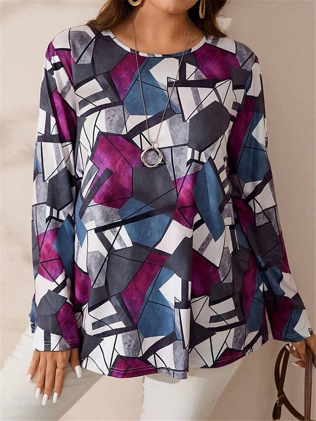 More information about Women's Plus Size Tops T shirt Tee Color Block Print Long Sleeve Crew Neck Casual Daily Fall Winter Blue