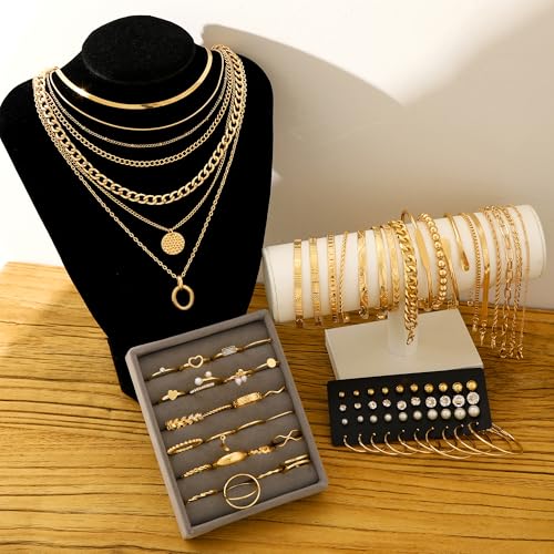sizzling ! FAXHION 68 Pcs Gold Jewelry Set for Women With 7 Necklace,17 Bracelet, 5 Hoop Earrings,15 Stud Earrings,24 Knuckle Rings for Women Jewelry Set for Women