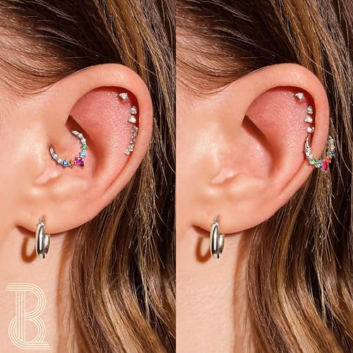 BodyBonita 16G Septum Rings Jewelry - Cubic Zirconia Luxe 316L Stainless Steel Hinged Nose Rings Hoops for Women Conch Piercing Jewelry Tragus Daith Helix Earring 14K Gold Plated/Silver 8 mm/10 mm