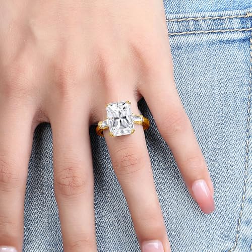 Moissanite Huge Emerald Three Stone Engagement Ring | Lab Grown 10 Carat Diamond & 925 Sterling Silver | Engagement Rings For Women | Wedding Rings For Women | Sterling Silver Ring