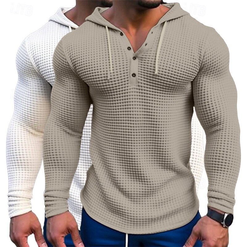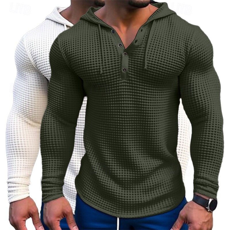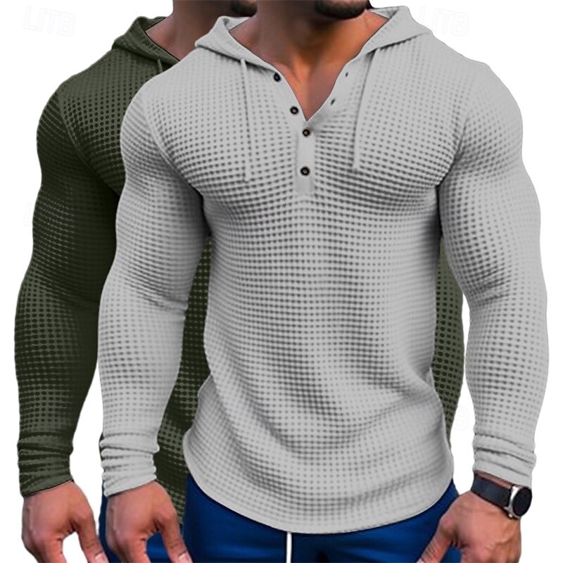 sizzling ! Men's Waffle Shirt T Shirt Tee Top Long Sleeve Shirt Long Sleeve Hooded Spring & Fall every Seasons Plain Fashion Designer Basic 2 Piece Buttons Vacation Street Casual Army Green + Gray Khaki green