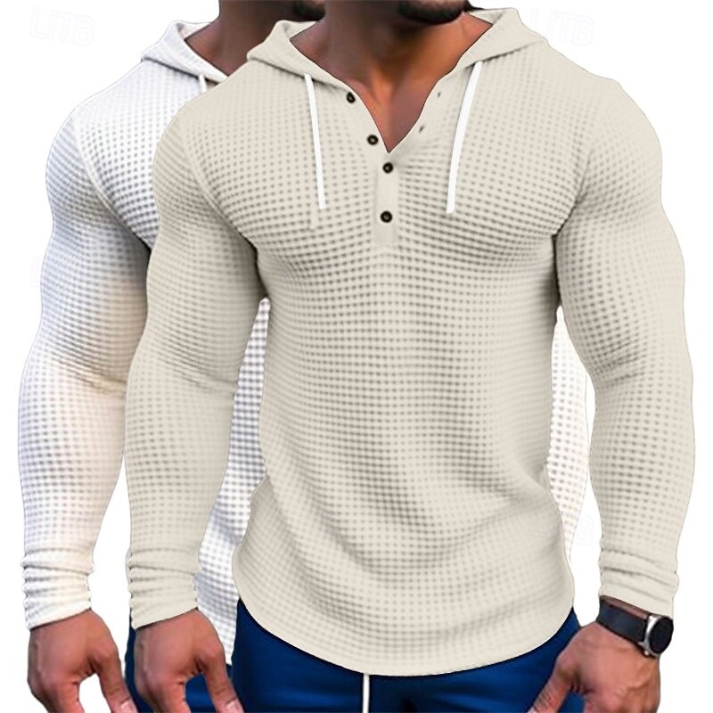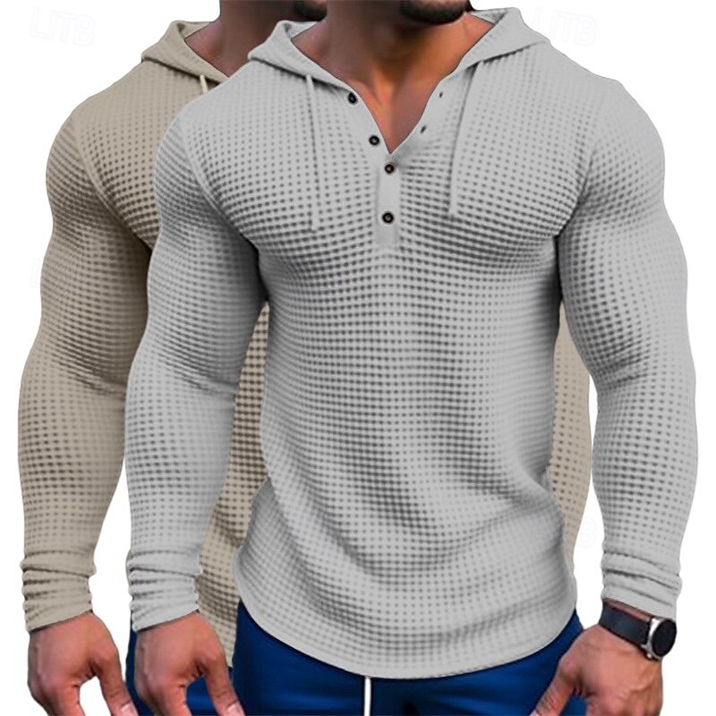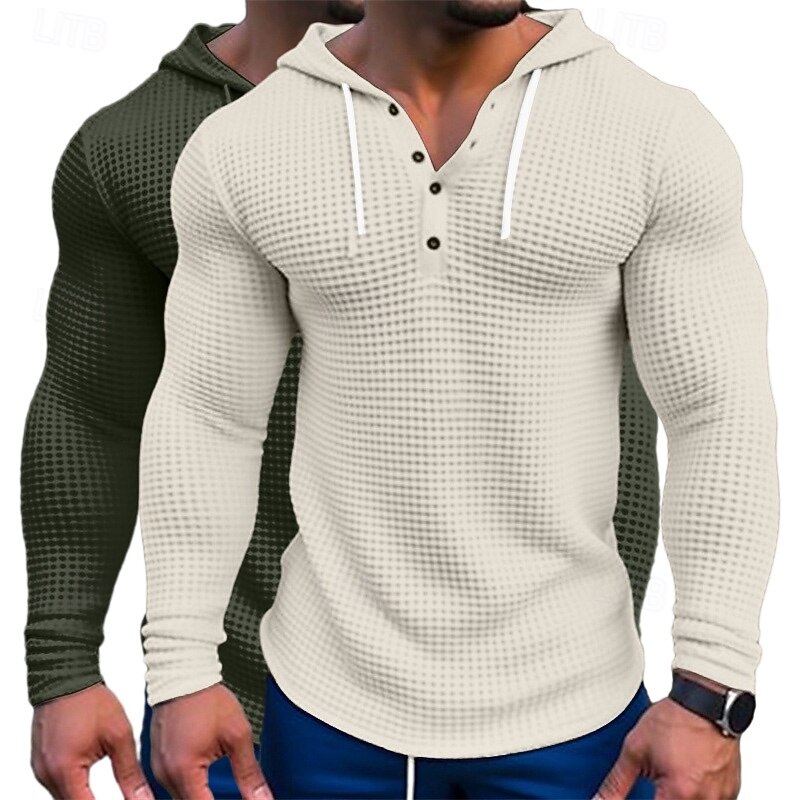 More information about Men's Waffle Shirt T Shirt Tee Top Long Sleeve Shirt Long Sleeve Hooded Spring & Fall every Seasons Plain Fashion Designer Basic 2 Piece Buttons Vacation Street Casual Army Green + Gray Khaki green
