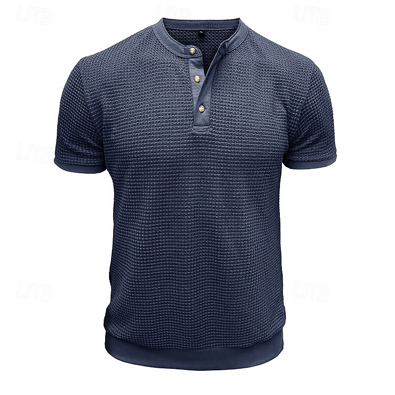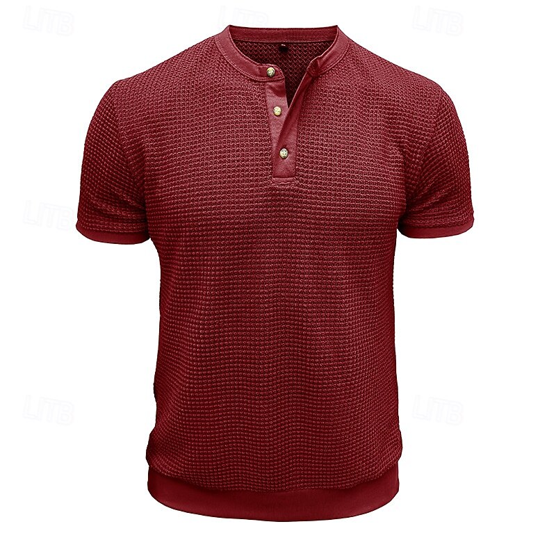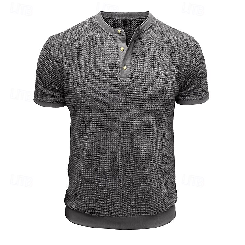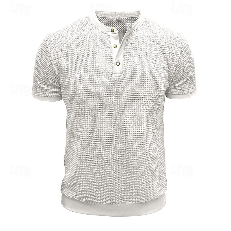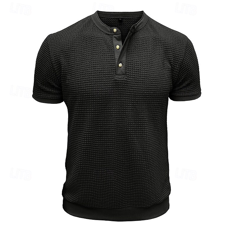 Why Choose Men's Waffle Henley Shirt Henley Shirt Knit Tee Short Sleeve Solid Color Plain Knitwear Casual Daily Buttons Knitted Henley Outdoor Casual Daily Summer Spring & Fall Black White Gray Henley T-Shirt?