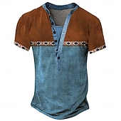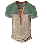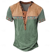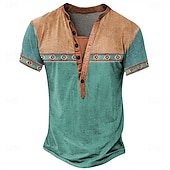 More information about Men's Tribal T Shirt Henley Shirt Tee Short Sleeve Designer Basic Bohemian Outdoor Casual Daily Summer Lake Blue Light Green Light Blue Khaki Henley Henley T-Shirt