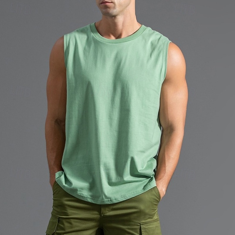 More information about Men's Tank Top Vest Top Undershirt Sleeveless Shirt Sleeveless Crew Neck Summer Plain Fashion Designer Basic traditional Vacation Street Going out Black White Light Green Top Tee for Men