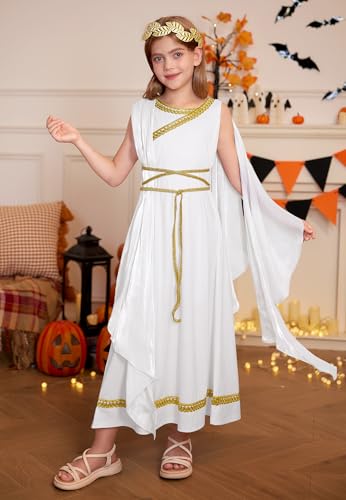 Fabric type: 95% Polyester, 5% SpandexCare instructions: Hand Wash OnlyOrigin: ImportedClosure type: DrawstringElegant and Divine Design β Featuring a sleeveless toga dress with a non-detachable sheer cape and an adjustable gold leaf crown, this set brings a timeless mythological spirit to your child's wardrobe. With its graceful drapery and luminous details, it inspires poise, wisdom, and an empowering sense of legendary eleganceSize Guideline - 41-44'' (4 Years), 45-48'' (6 Years), 49-52'' (8 Years), 53-56'' (10 Years), 57-60'' (12 Years). Please refer to the Size Chart on the pictureMythic Precision - Regal elegance meets present-day function. This goddess gown features a secure gold-trim belt with adjustable ties, built-in modesty lining, fixed cape, and expandable gold leaf crown. Classical Greek artistry designed for contemporary comfortAdorn and celebrate with mythical elegance! Let your child embody divine goddess energy, radiating in timeless graceβready for a legendary journey of wisdom and empowermentWith timeless elegance and classical artistry, this mythology-inspired set adds legendary grace to her everyday wardrobe. Perfect for Halloween parties, school presentations, photo shoots, and mythical adventures Perfect for everyday use. top-grade materials and excellent craftsmanship ensure long-lasting durability.