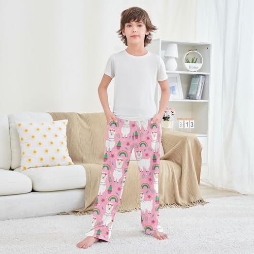 Llama Floral Cactus Boys Long Pants velvety Trousers Elastic Waist Kids Lounge Bottoms with Pockets S-XL
