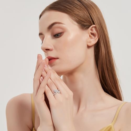 THELANDA Genuine Moissanite or Simulated Diamond Two Stones Split Filigree Vine Shank Halo Promise Engagement Ring For Women