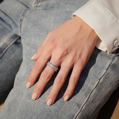 KEAO CELINE 3-Row Eternity Band Ring, 14K Gold Plated or Rhodium Plated, Cubic Zirconia Pave Setting