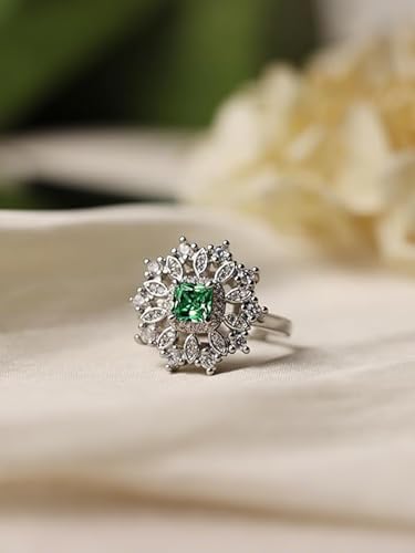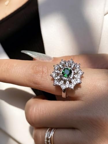 Ring size: AdjustableMaterial: GemstoneMetal type: Silver plated brassGem type: EmeraldGreen Ring for Women: Stunning and glamorous faux diamond inlaid on the top of the emerald ring. This silver rings for women can be a great way to showcase your individuality and make a fashion style.Dainty Rings: This rhinestone grandmother rings adds a sophistication and classic energy to effortlessly elevate any outfit. The crystal rings are easy to create a cool look and the design will never go out of style.Perfect Gift: Hand jewelry finger rings crystal, contemporary and chic, it's a good choice for Graduation, Birthdays,Valentine's Day,Mother's Day,Party,Night out,Prom,Anniversary, Weeding,Christmas, Thanksgiving or New year.Material: This Cubic Zirconia ring are made of high-quality alloy materials combined with electroplating process, our gold rings for women are fully mirror polished, making the surface of the dainty rings smooth and durable.Don't worry about tarnish or fade over time, These gems rings for women gold will bring you a better wearing experience.Mothers Ring: Bright gems, simple and elegant design. Diamond cut-inspired accessories, dainty and full of love. Perfect for everyday use. top-grade materials and excellent craftsmanship ensure long-lasting durability.