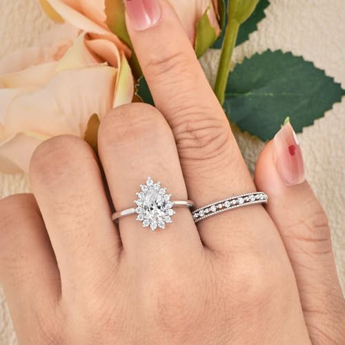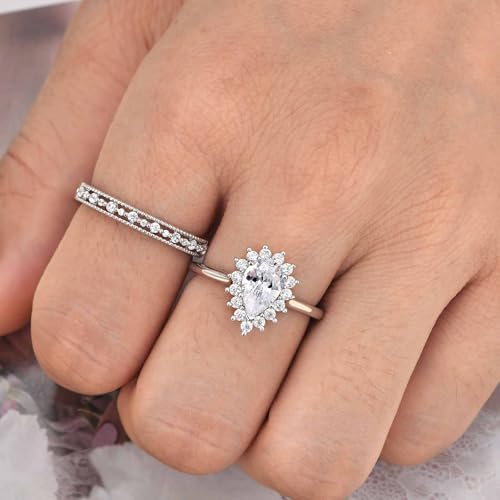 Wedding Ring Set for Her Wedding Band Engagement Ring Set for Women 925 Sterling Silver 2Ct Pear Cut AAAAA Cz Size 5-10