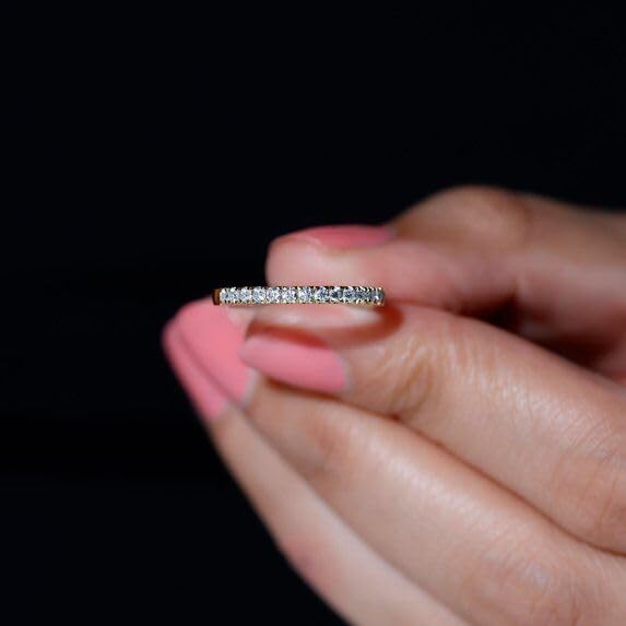 Diiro 14K White Gold Plated Moissanite Eternity Band Dainty Stacking Ring 1 Ct Round Cut Diamond Wedding Bands for Women