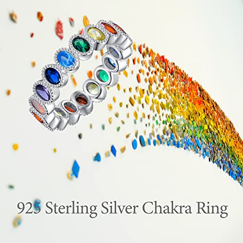 Chakra Ring 925 Sterling Silver Oval 7 Colorful Cubic Zirconia Chakra Rainbow Ring for Women Anniversary Presents