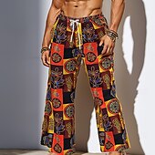 More information about Men's Patchwork Ethnic Trousers Baggy Pants Casual Pants Mid Waist Vintage Retro Tribal Vacation Holiday Beach Wear Drawstring Elastic Waist Wide Leg Summer Spring 3D Print Brown