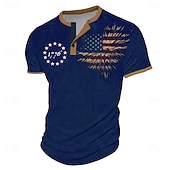 Men's American Independence Day Graphic American US Flag 1776 T shirt Henley Shirt Short Sleeve 3D Print Sports Designer Party Street Casual Summer Spring Black Blue Green Black Gray Henley Henley