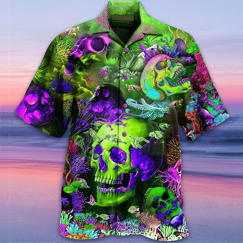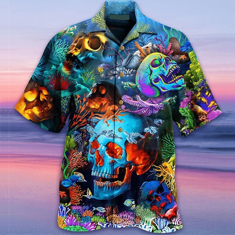 Highlights - flawless for the spring and summer seasons - Features a short sleeve design for comfort - Specifically designed for men - Offers a trendy Hawaiian style - Features a rare skull pattern - Neckline is designed with a fashionable turndown style