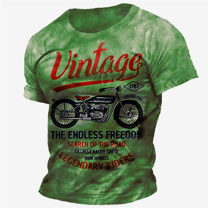 More information about Men's Graphic Motorcycle T Shirt Distressed T Shirt Short Sleeve T shirt 3D Print Crew Neck Shirt Vintage Fashion Designer Outdoor Daily Sports Blue Brown Green Spring & Summer Clothing Apparel S M L