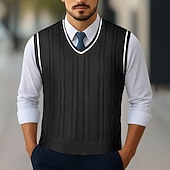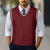 Why Choose Men's Sweater Sweater Vest Pullover Sweater Jumper Cable Knit Regular Tops Knitted Slim Fit Geometric V Neck Knitwear Contemporary Casual Daily Wear Clothing Apparel Winter Spring & Fall Wine Black?