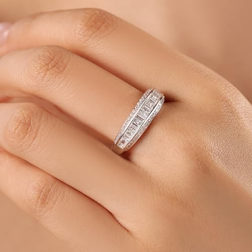 • Premium Moissanite: Every stone on this moissanite eternity wedding band rings for women is carefully selected="" by us for its top-quality Moissanite(D Color VVS1 Clarity 3EX) with fire is 2.5 times that of a real diamond, mohs 9.25 hardness more dazzling than a nature diamond. This is a enduring and elegant moissanite wedding band rings for women, The Wedding ring’s quality is comparable to that of a diamond ring.
