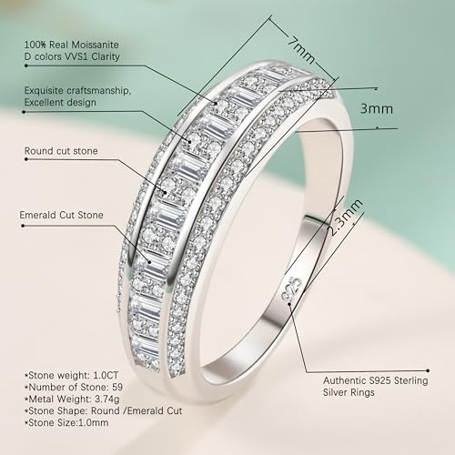 More information about Moissanite Wedding Bands for Women Eternity Rings Round Emerald Cut 925 Sterling Silver Engagement Anniversary Size 5-10