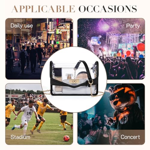 • Trendy Look: Crafted with gold hardware and PU leather trim, this clear concert bag exudes sophistication and durability. It is fashionable, elegant, and suitable for daily, office, stadiums, festivals, concerts, graduation, and parties