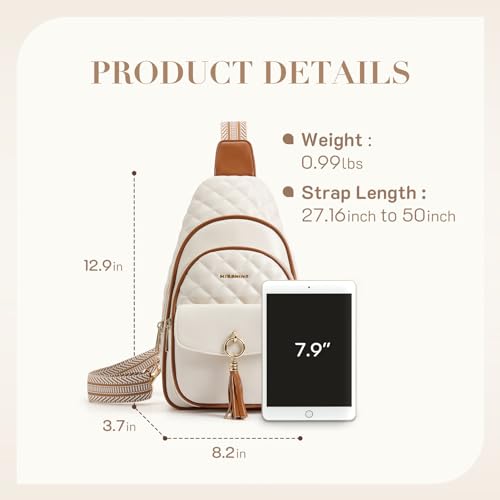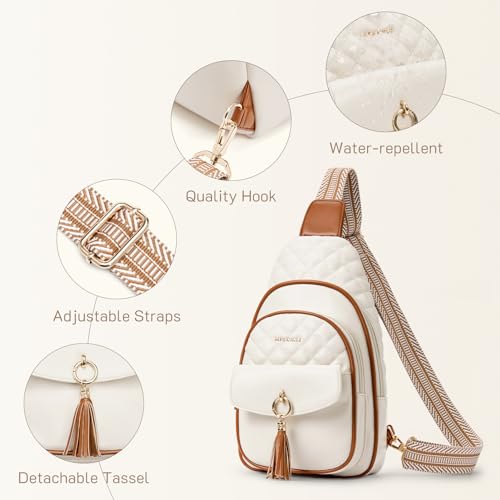 Missnine PU Leather Sling Bag for Women Quilted Chest Crossbody Trendy Travel Bag for Hiking Cycling with Tassel