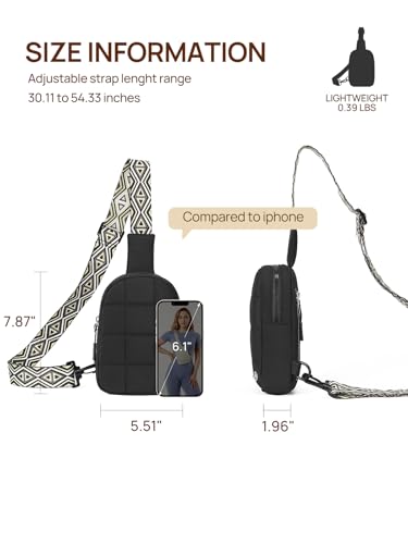 Trendy Puffer Material: The Telena puffer crossbody bag is made of nylon material, which is water-resistant, wear-resistant and durable to use. Cotton padded filling make this sling bag soft, lightweight and comfortable to wear. Note: If you receive the bag found wrinkles, you can use the hanging ironing machine for ironing, ironing will restore the originalSpacious Organization Structure: Sling bag for women is a sophisticated bag that also stores the things you need to go out. The main pocket has enough space for a small umbrella, a mobile phone; Built-in card slots keep your cards organized. The back zipper pocket is used to store your passport; cash; coins and protect your personal information and propertyTwo Ways to Wear: With a wide colorful adjustable shoulder strap ranging in length from 30.11 to 54.33 inches. You are free to adjust the strap length according to the activity needs while reduces the pressure on the shoulder. For example, use it as a crossbody bag or shoulder bag for daily outingsSpecifications: The chest bag dimensions are 5.51 x 7.87 x 1.96 (L x H x W) and the weight is 0.39 lbs. It is lightweight, not burdensome, and easy to carry. Whether it is cycling; running; walking; camping; hiking; traveling; daily outings, it is an excellent carry-on bagIdeal Present for Women: Crossbody sling bags for women is both stylish and functional, is the ideal gift for birthday; Thanksgiving; Christmas; Mother's Day; Valentine's Day and other holidays; This puffer bag is suitable for women, mothers, wives and sisters who like soft, practical and modern aesthetic bags Perfect for everyday use. superior materials and excellent craftsmanship ensure long-lasting durability.
