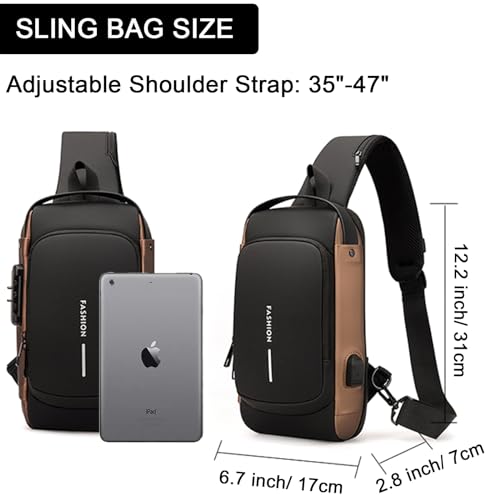 Sling Bag for Men Anti-theft USB Crossbody Shoulder Backpack Purse Waterproof PU Leather Chest Bag Travel Daily Use