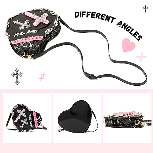 More information about SUKUTU Women Gothic Punk Crossbody Bag Cute Heart Shaped Studded Shoulder Bag Purse