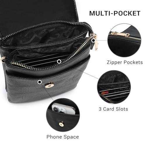 VONMAY Vegan Leather Small Crossbody Bags for Women, 3 Compartment Cell Phone Wallet Purses with Adjustable Guitar Strap