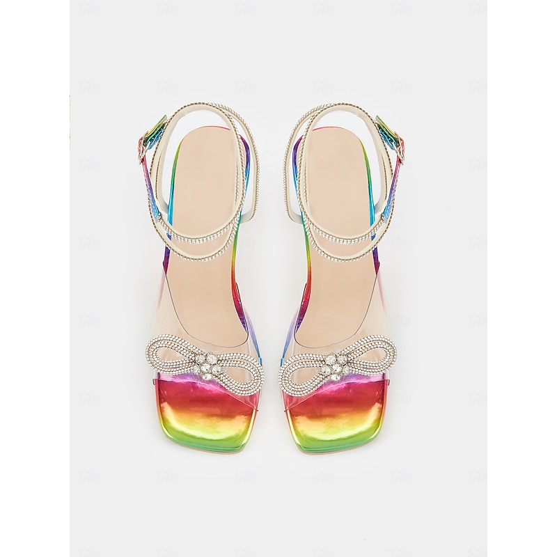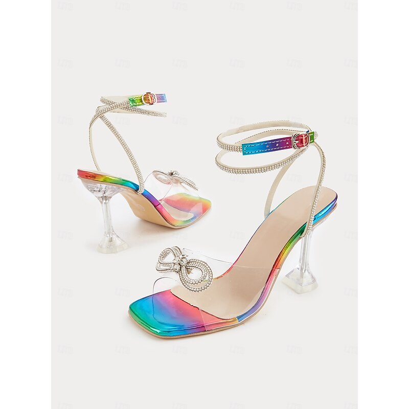 Why Choose Rainbow Clear Heels with Crystal Bow Detail - Colorful High Heel Sandals for Women - Ideal for Special Occasions?