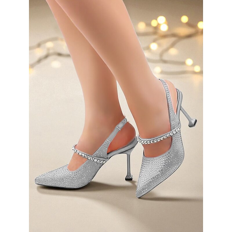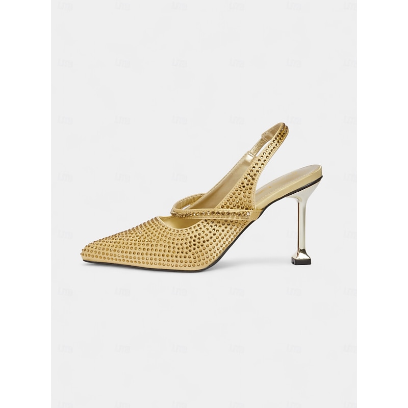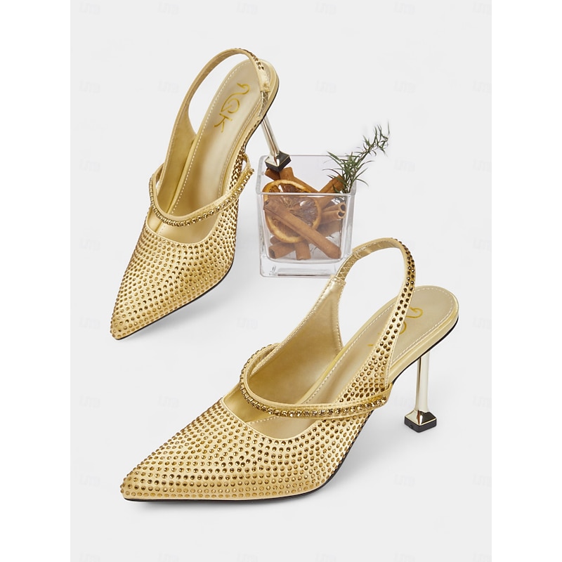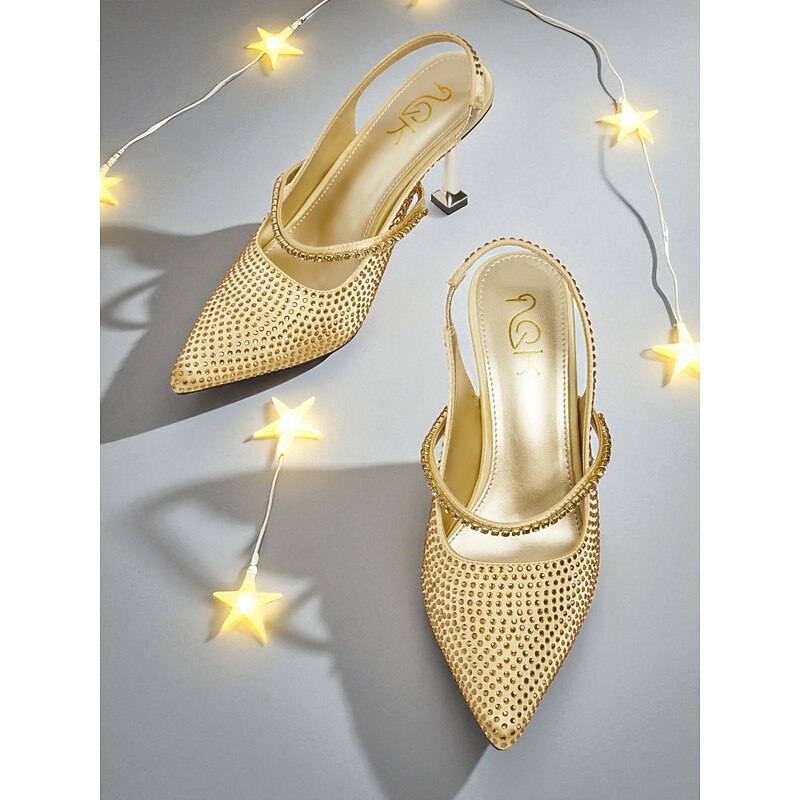 More information about Women's Gold Rhinestone Pointed Toe Heels - Sparkly Slingback Party Pumps for Nightlife and Cocktail Events