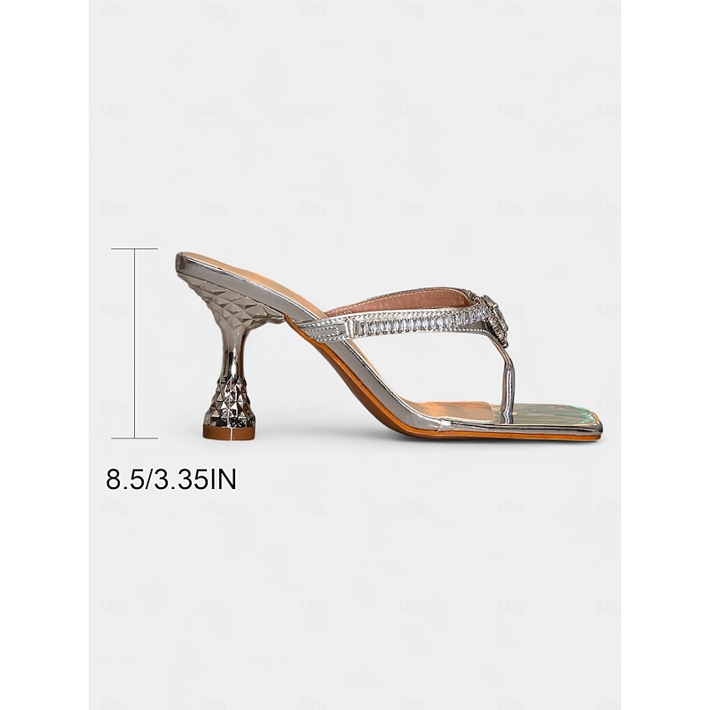 Highlights - Stunning sparkling glitter upper materials - Luxurious synthetic leather lining materials - Elegant rhinestone embellishment - Square toe for a chic look - Open toe design for added style - robust rubber outsole for long-lasting wear