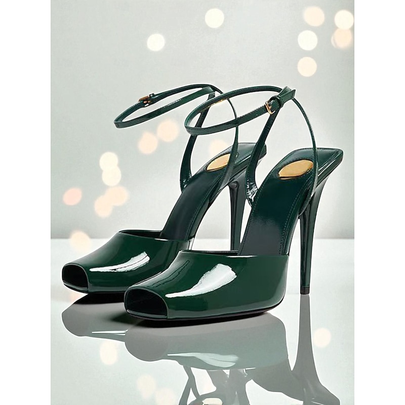 Why Choose Women's Dark Green Peep Toe Patent Leather High Heels - Ankle Strap Stilettos for Cocktail Parties and Evening Glam?