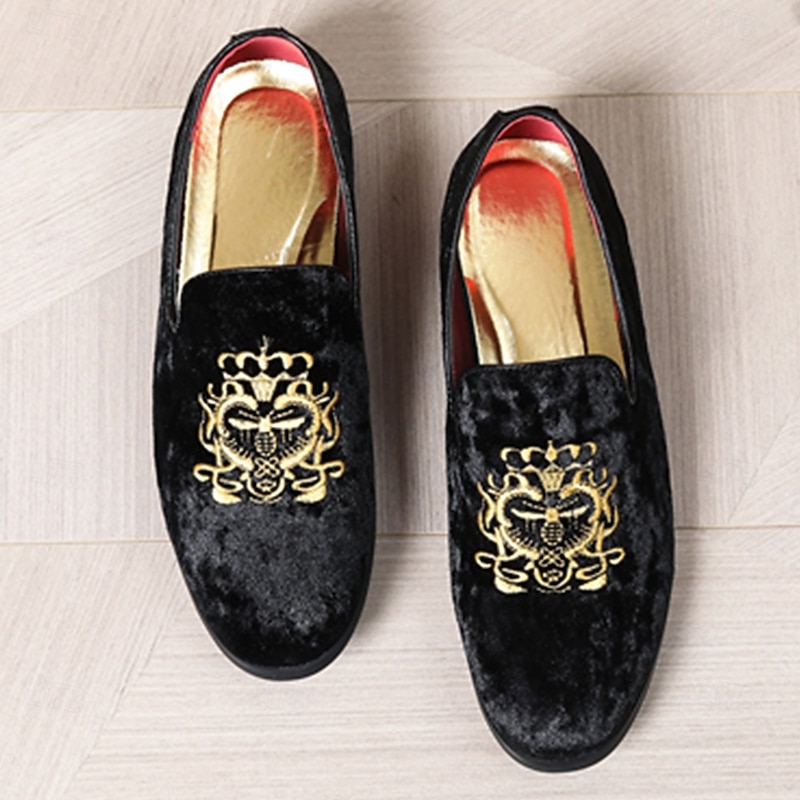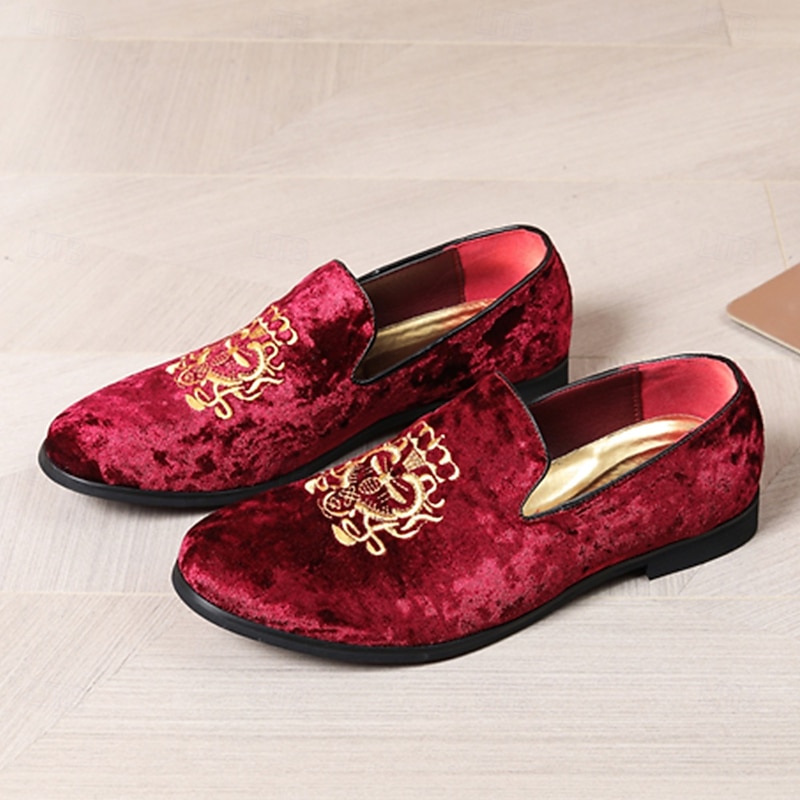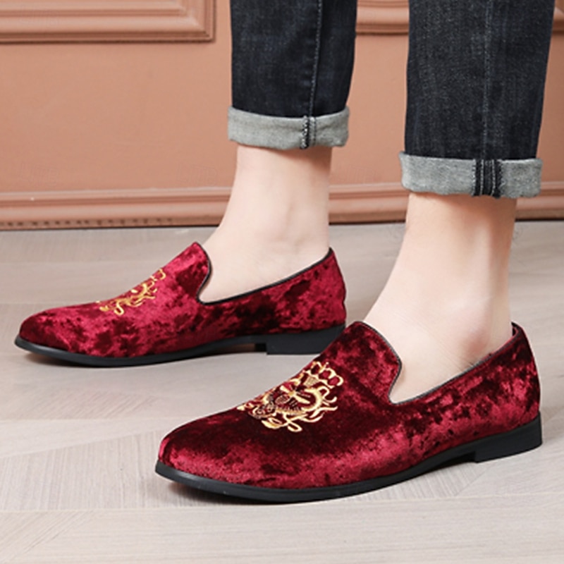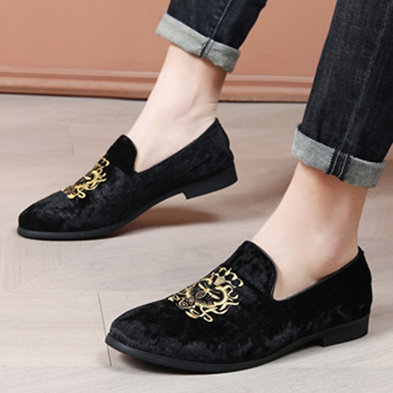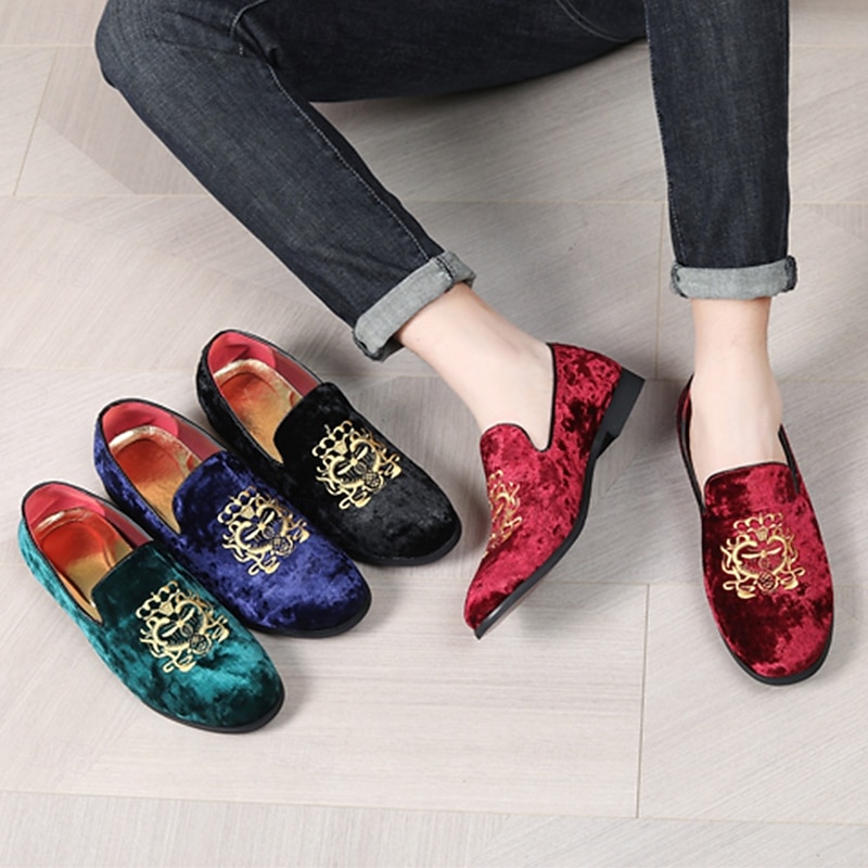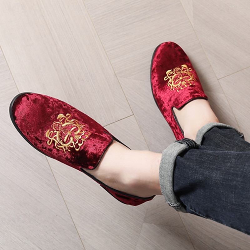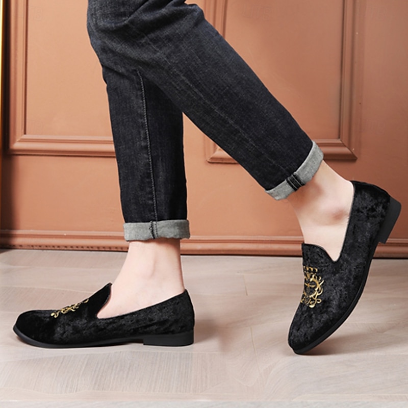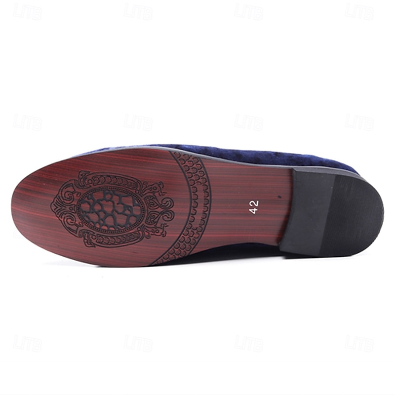 Highlights [Fabric:] These men's loafers are expertly crafted from luxurious corduroy, ensuring a soft texture and sophisticated look. The navy blue hue offers timeless elegance, making these shoes a quintessential addition to any formal wardrobe. [Fit Style:] Designed with a round toe silhouette, these loafers provide a comfortable and timeless shape that complements both formal attire and smart-casual outfits. The slip-on style allows for easy wear while maintaining a sleek profile. [Design Highlights:] Featuring a distinguished gold embroidery on the upper, these loafers exude a touch of regal sophistication. The plush red lining adds a surprising contrast that enhances both elegance and comfort. The durable rubber sole ensures longevity and slip resistance, providing practicality alongside style. [Occasions:] Perfect for formal events such as weddings, galas, and upscale gatherings. These loafers are also suitable for sophisticated casual outings, where flair and sophistication are desired. Whether at a celebratory party or a refined dinner, these shoes will elevate any ensemble. [Size Availability:] Available in a wide range of sizes from US7 to US13, these loafers cater to various foot sizes, ensuring a refined fit for every gentleman. Perfect for everyday use. superior materials and excellent craftsmanship ensure long-lasting durability.