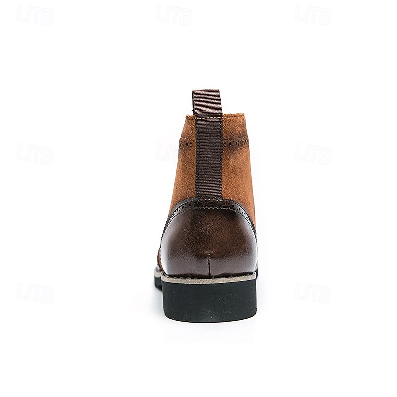 sizzling ! Men's Brown Faux Suede & Leather Ankle Boots with Brogue Detailing, Wingtip Design, and Rugged Sole – Vintage Style Casual & Formal Footwear