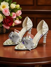 More information about Women's Baroque Floral Pointed Toe Heels with Pearl Beaded Heel and Satin Bow – 1950s Elegant Vintage Dress Shoes for Weddings, Parties and Formal Events