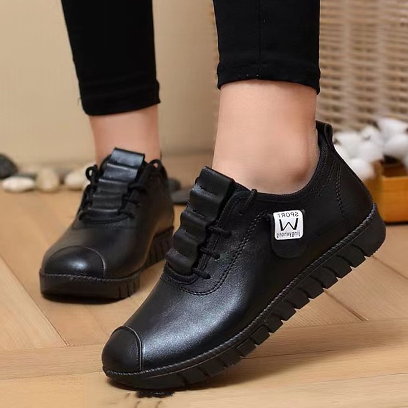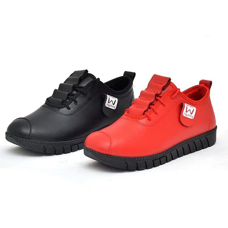 Highlights [Fabric] Crafted from high-quality PU leather, these women's sneakers boast a durable and easy-to-clean upper, perfect for daily wear. The interior is lined with soft fleece, providing warmth and coziness, making these shoes suitable for colder weather. [Fit] Designed with a flat heel and a sleek, low-top silhouette, these sneakers offer optimal comfort for everyday activities. The lace-up closure ensures a secure and adjustable fit, supporting dynamic movement and casual walking. [Design Highlights] Featuring a minimalist style with a sporty tag, these sneakers are adorned with sleek, solid colors, available in classic black and vibrant red. The round toe design adds elegance and a touch of modernity, while the flexible, anti-slip rubber outsole provides excellent traction and stability. [Occasions] Ideal for daily wear and special occasions like Valentine's Day, these sneakers effortlessly blend practicality and style. They make a perfect choice for those eager to make a bold fashion statement without sacrificing comfort. [Sizing] These shoes are available in a range of sizes including US5.5 to US9, ensuring a comfortable fit for various foot sizes. Perfect for those who prioritize comfort and elegance in their footwear collection. Perfect for everyday use. top-grade materials and excellent craftsmanship ensure long-lasting durability.