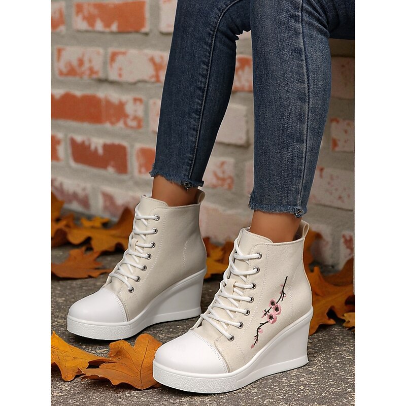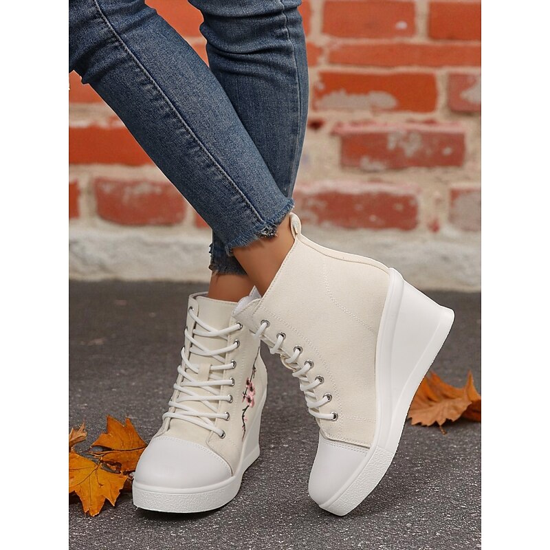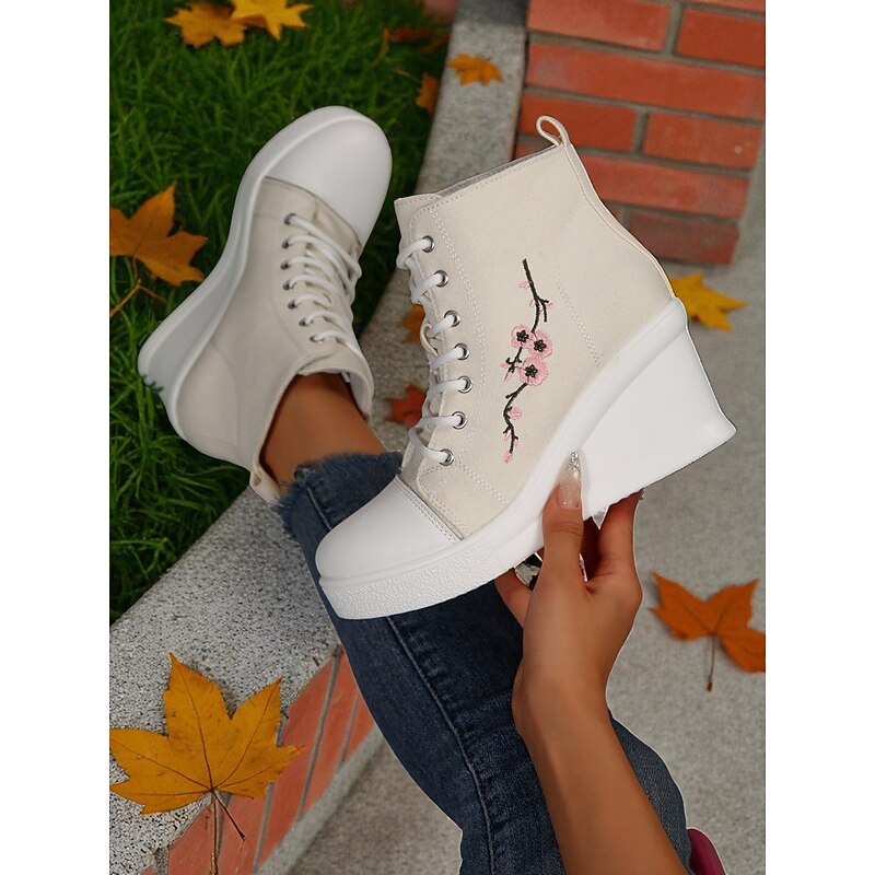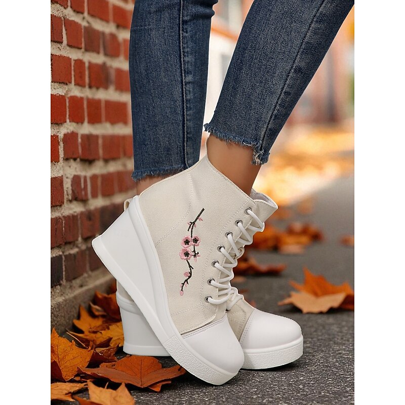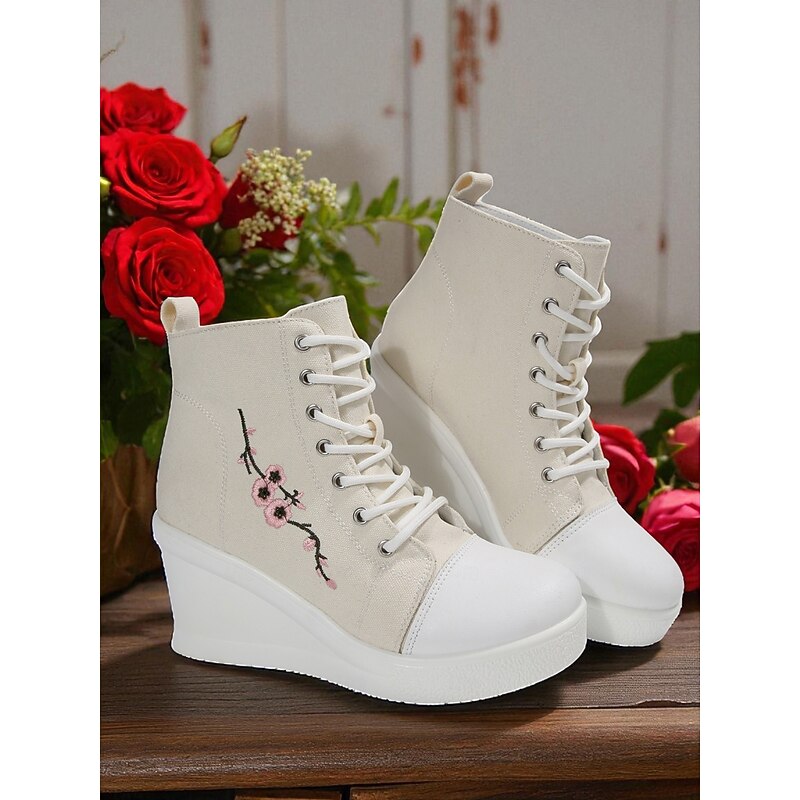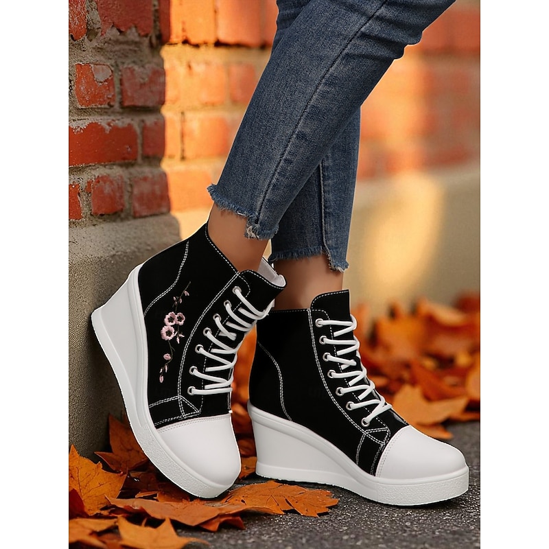 $34.99 - Women's Black Canvas Wedge Sneakers with Red Rose Embroidery, Lace-Up Platform Casual Shoes for Streetwear, Holloween Parties and Festivals 2025. Shop for cheap Shoes For Women online? Buy at lightinthebox.com on sale today!