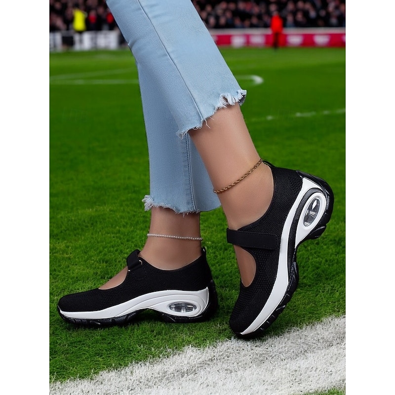 Why Choose Flyknit Mesh Slip-On Sneakers for Women – pleasant Velcro Strap Sport Shoes with Air Cushion Sole for Walking and Everyday Wear?