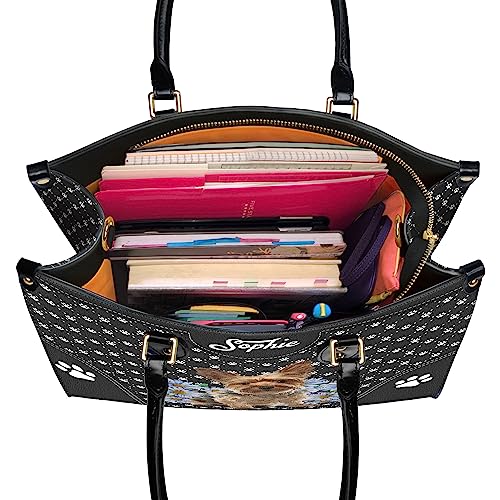 Personalized Yorkshire Terrier Dog Handbags, Custom Name Dog Leather Bags, Purses, Shoulder Bag, Gift For Dog Mom Dog Lover