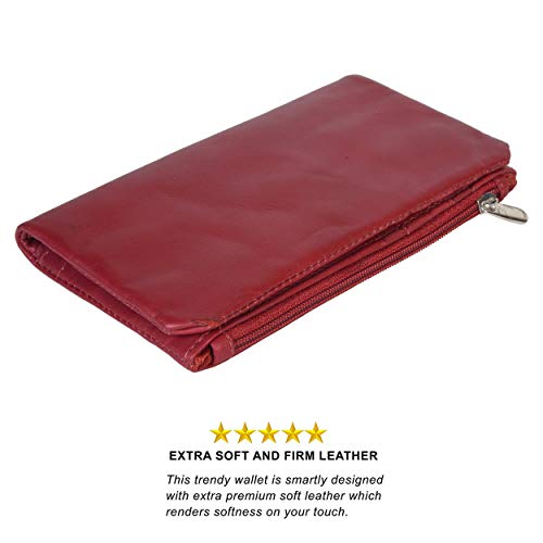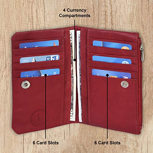 Why Choose Leatherboss Genuine Leather Slim Compact Clutch Debit Credit Slim Card Holder Wallet with Coin Pocket for women, Cherry?