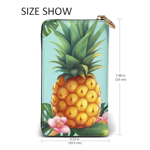 Tropical Pineapple Wallet for Men Women Long Purse Leather Clutch Large Business Handbag Travel Phone Holder Credit Card Holder Money Case with Zipper Leather Wallets Gift