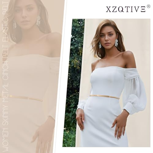 sizzling ! XZQTIVE Women Skinny Metal Chain Waist Belt Stretchy Saree Cinch Belt for Dress Gold Sliver