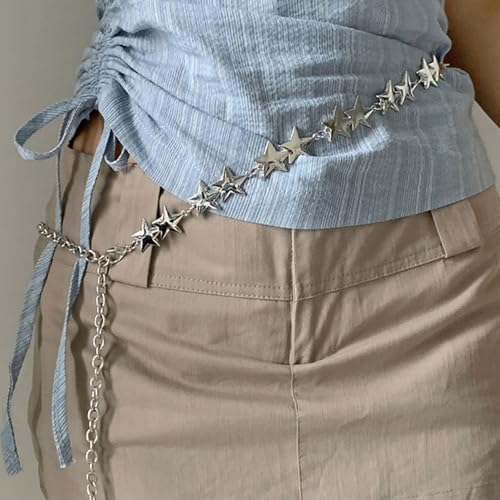 Silver Star Belt for Women Y2K Star Waist Chain Punk Chain Belly Belt Vintage Y2K Aesthetic for Dresses Jeans
