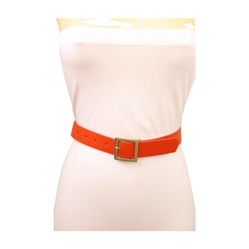 More information about Women Orange Color Fashion Belt - Hip High Waist Skinny Band Gold Square Metal Buckle S M z064