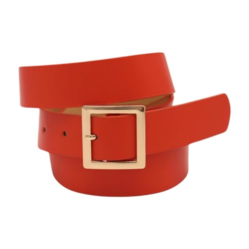 sizzling ! Women Orange Color Fashion Belt - Hip High Waist Skinny Band Gold Square Metal Buckle S M z064
