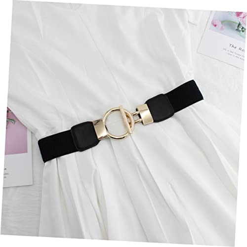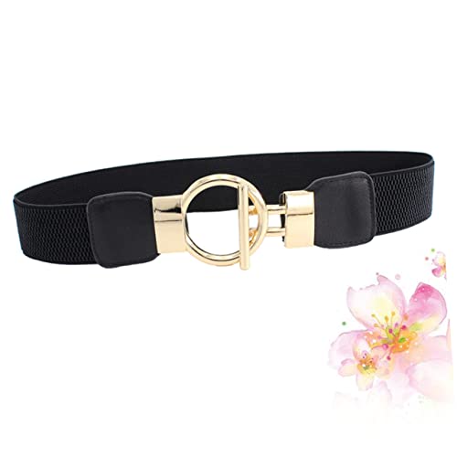 More information about Wide Elastic Waist Belt for Women Solid Stretchy Waistband with Golden Round Buckle Cinch Corset Belt for Dresses and Pants PU Alloy Material Accessory