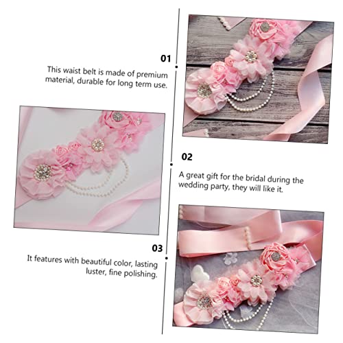 BESPORTBLE Pink Floral Pearl Rhinestone Maternity Waist Belt Decorative Girdle for Shower Wedding Dress Party Accessory Bridal Sash Dress Gown Belt